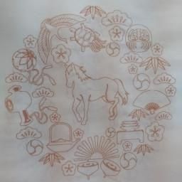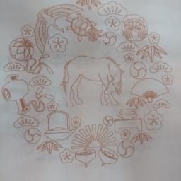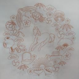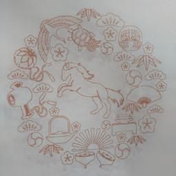 滲みの少ない手漉画仙に2026年の干支(午)瓦当紋を白地に茶で印刷してあります。